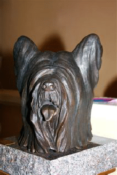 We do not want to omit to mention, that Panja is the first bitch to be elected after 19 years to the Best in Show in the USA. For this occasion, Carol had the following sculpture made in life-size. The photo shows Carol with her much-loved Panja